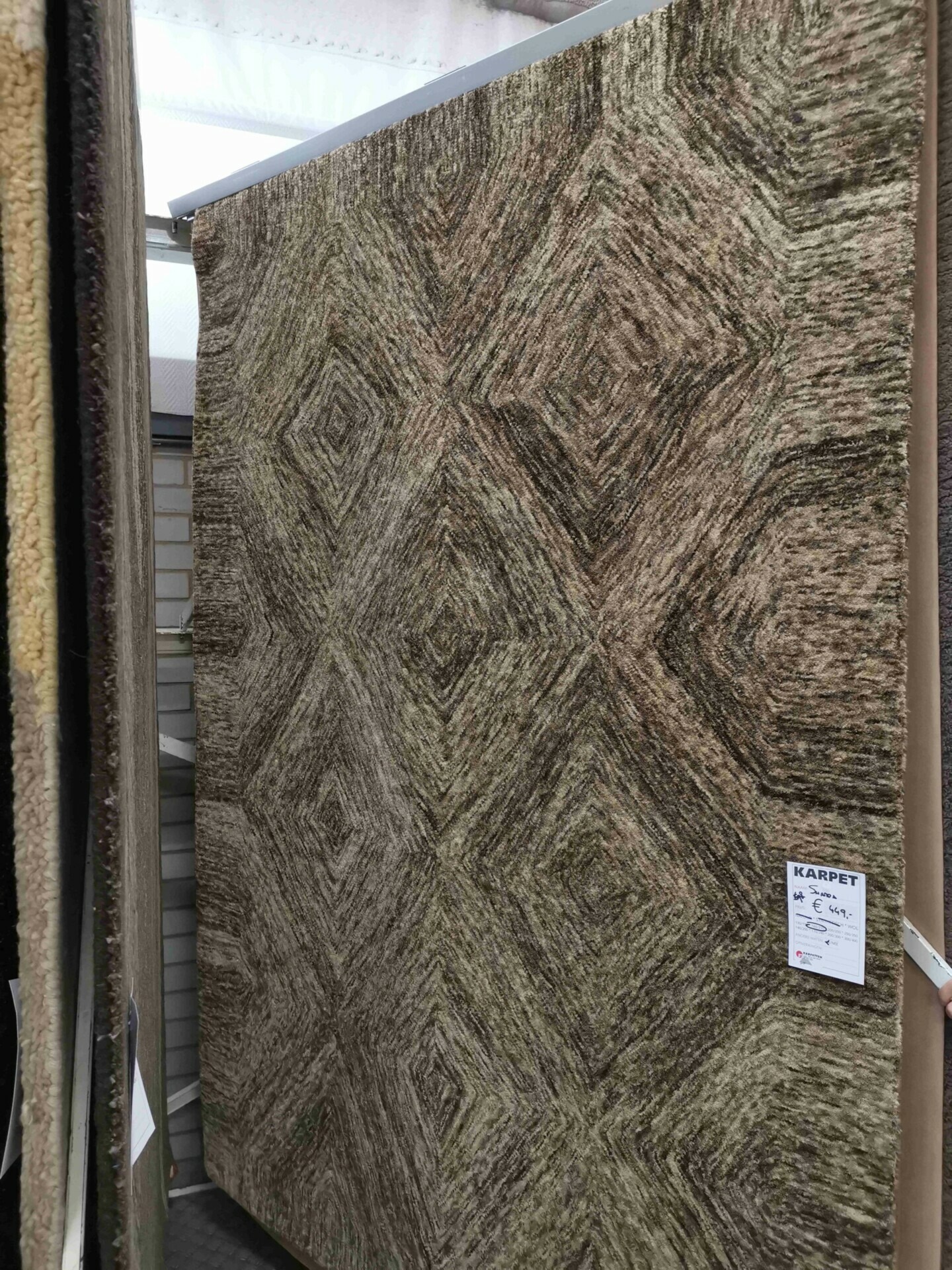 Omschrijving: Dit is een handgeweven karpet van wol.