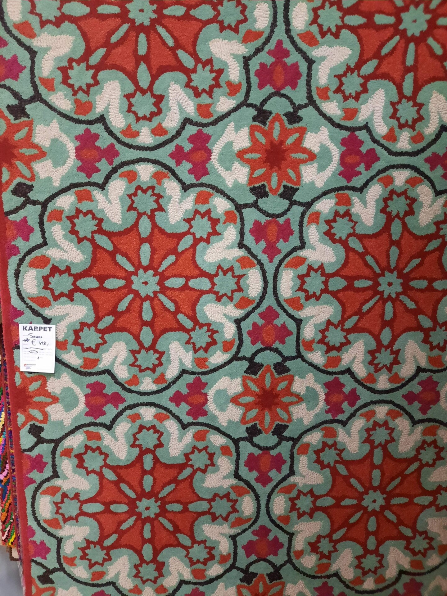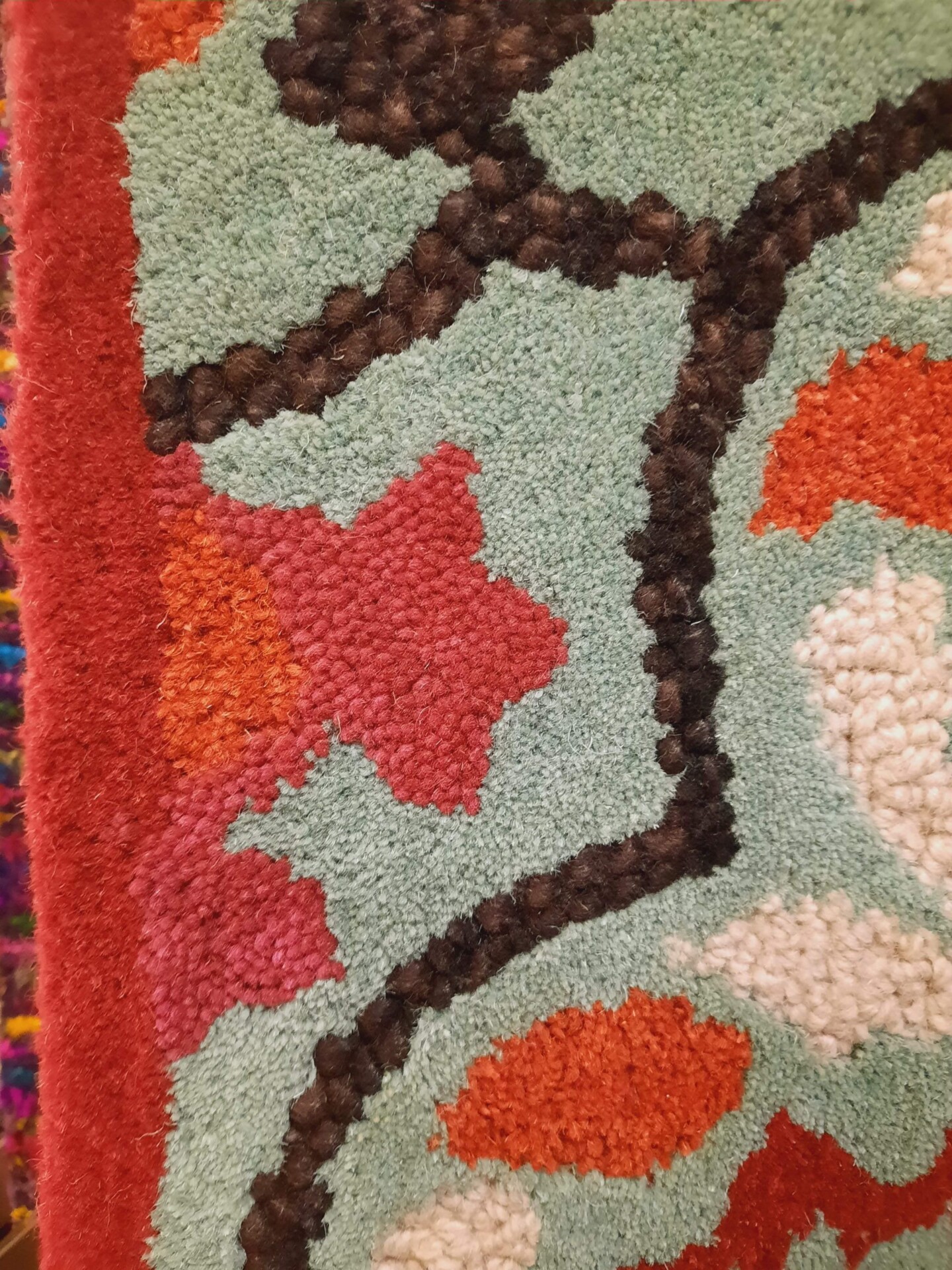 Omschrijving: Dit is een handgeweven karpet van wol.